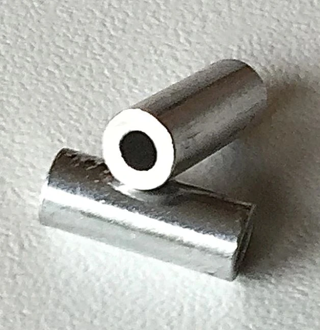 Top quality round aluminum sleeves for stop crimping large test mono line. Great for Daisy Chains and Big Game bait rigging.