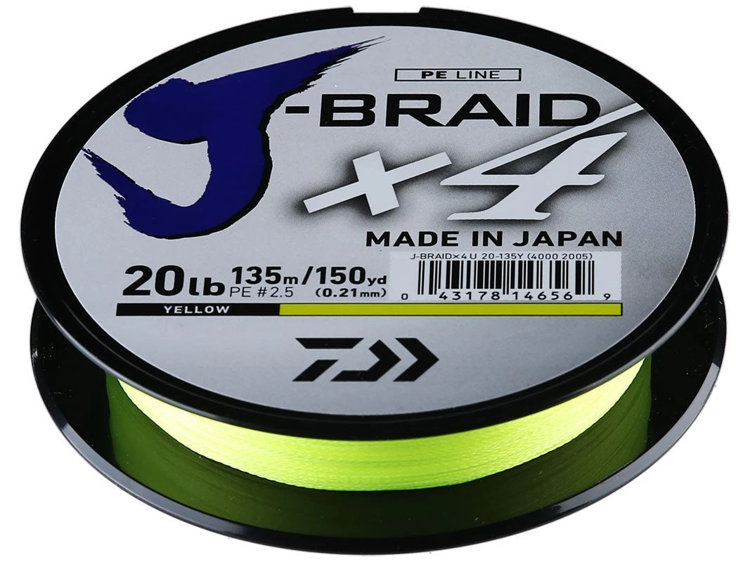 Perfect for applications where you need a highly visible line to detect subtle bites or line movement, the Daiwa J-Braid Braided Line Fluorescent Yellow delivers proven, high-performance at an unbeatable price. Featuring a 4, or 8-carrier construction, which offers maximum abrasion resistance and the ability to cut through grass or kelp, it also delivers superior knot strength, especially when using monofilament or fluorocarbon leaders.