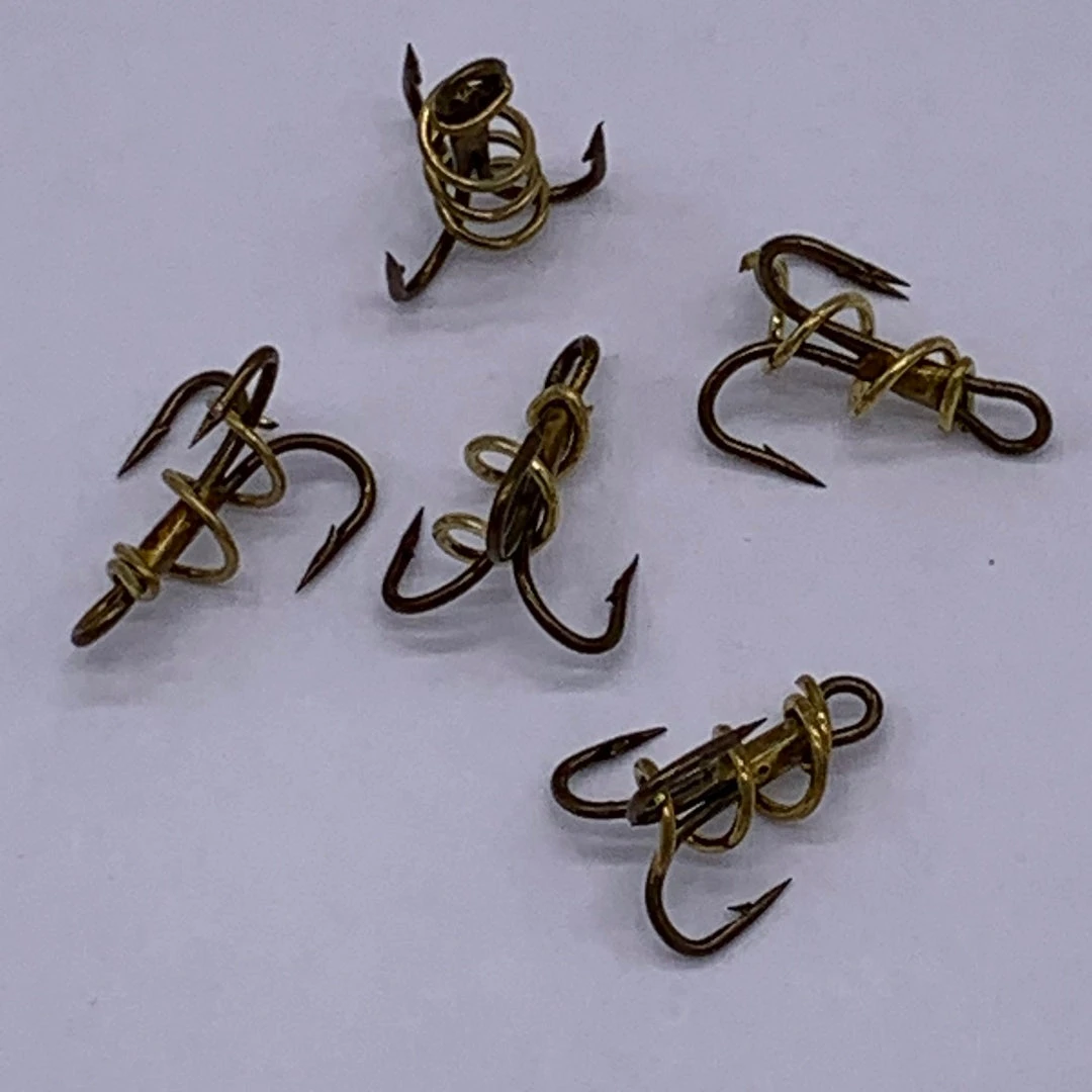 These treble hooks are fitted with a spring for holding all kinds of bait.