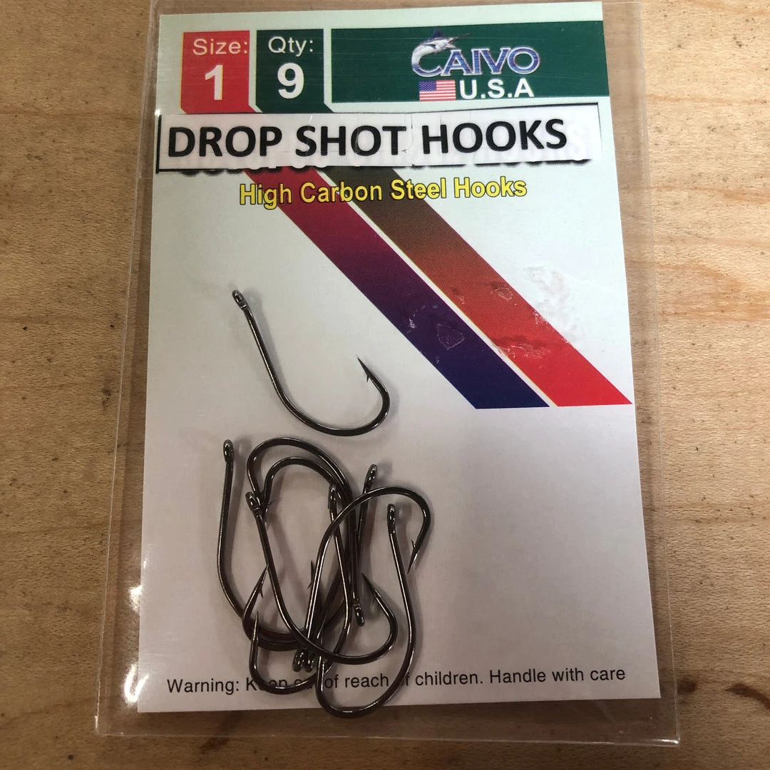 These Caivo dropshot hooks feature ultra-sharp points that will stick to anything that touches them.