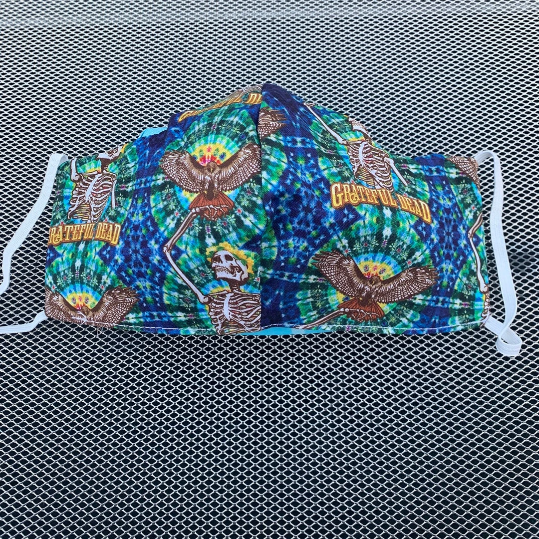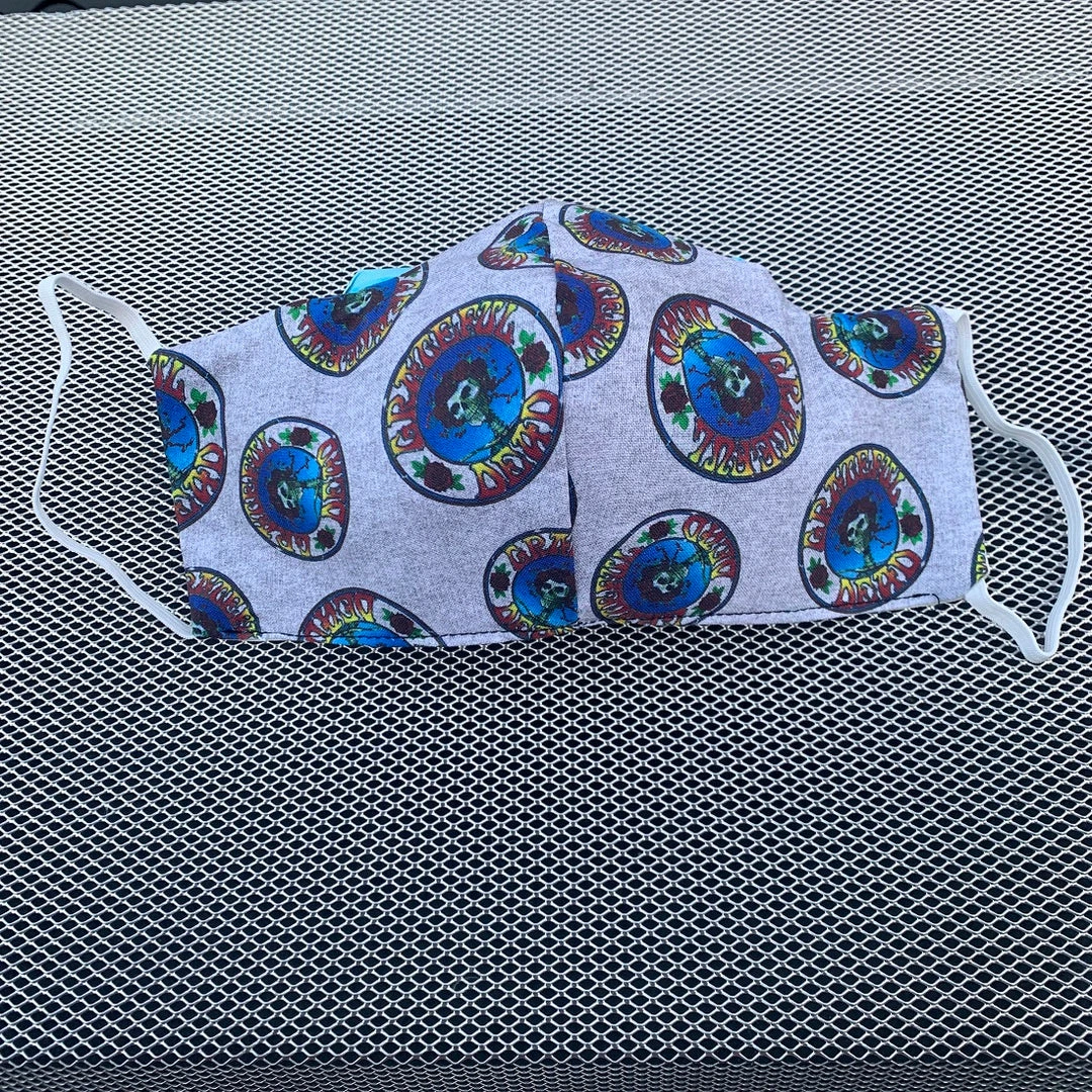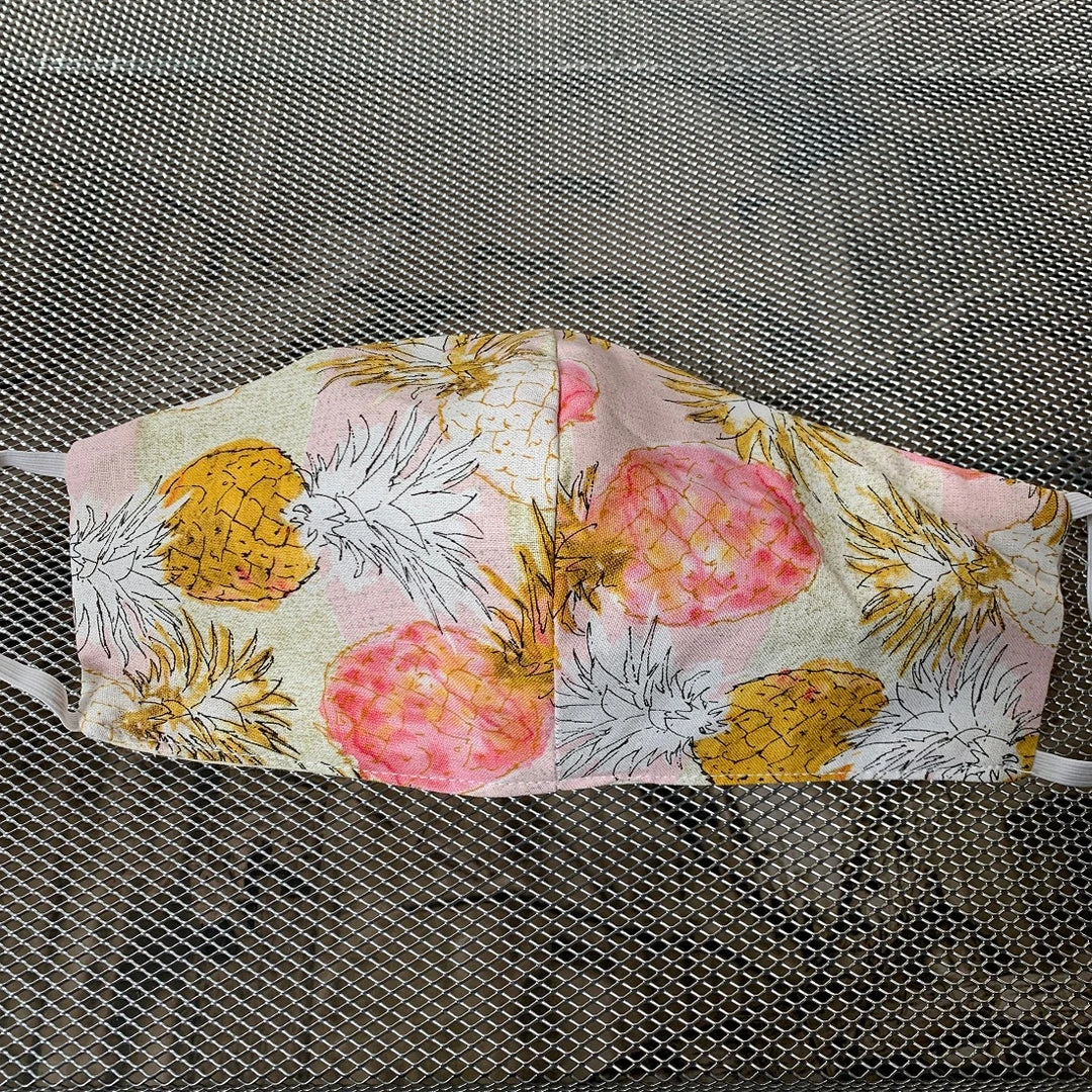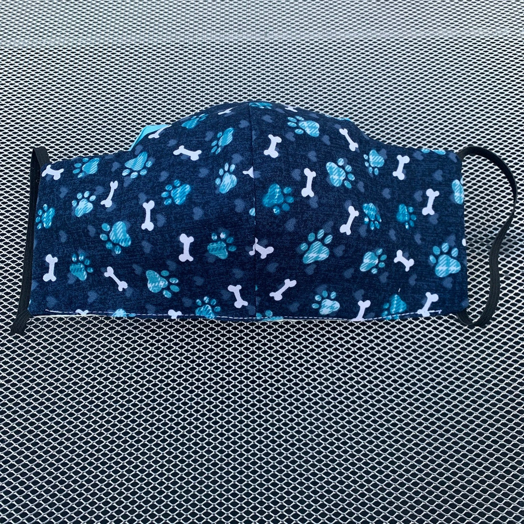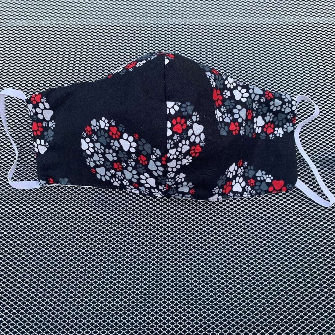 3 layer construction. 2 cotton panels with a 10 micron filter sewn in between. Elastic ear loops.
