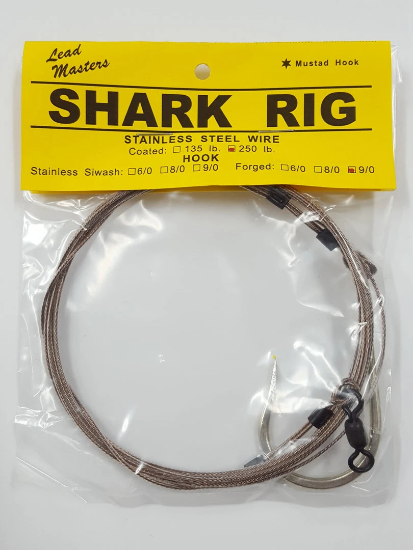 Lead Masters Shark Rig available in 250lb stainless steel wire and 9/0 hook, or 135lb stainless steel wire and 6/0 hook.