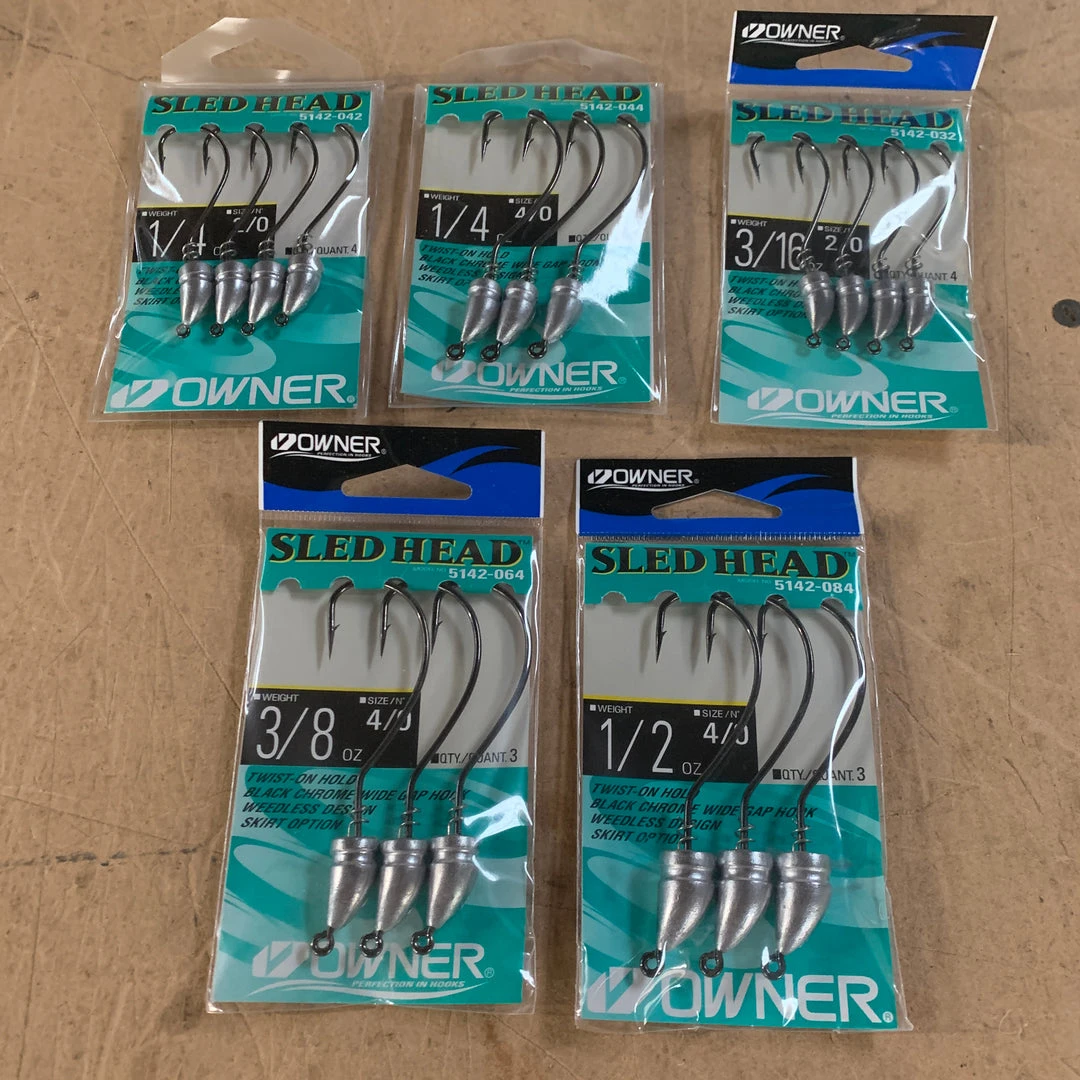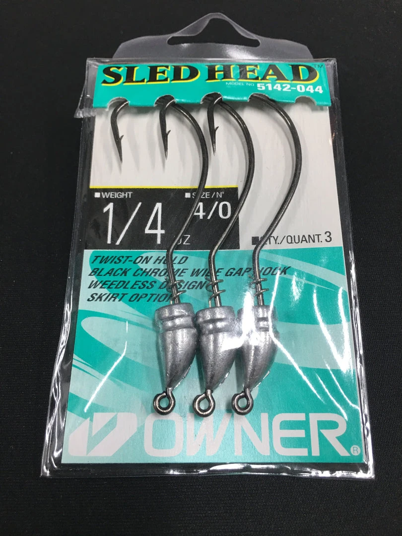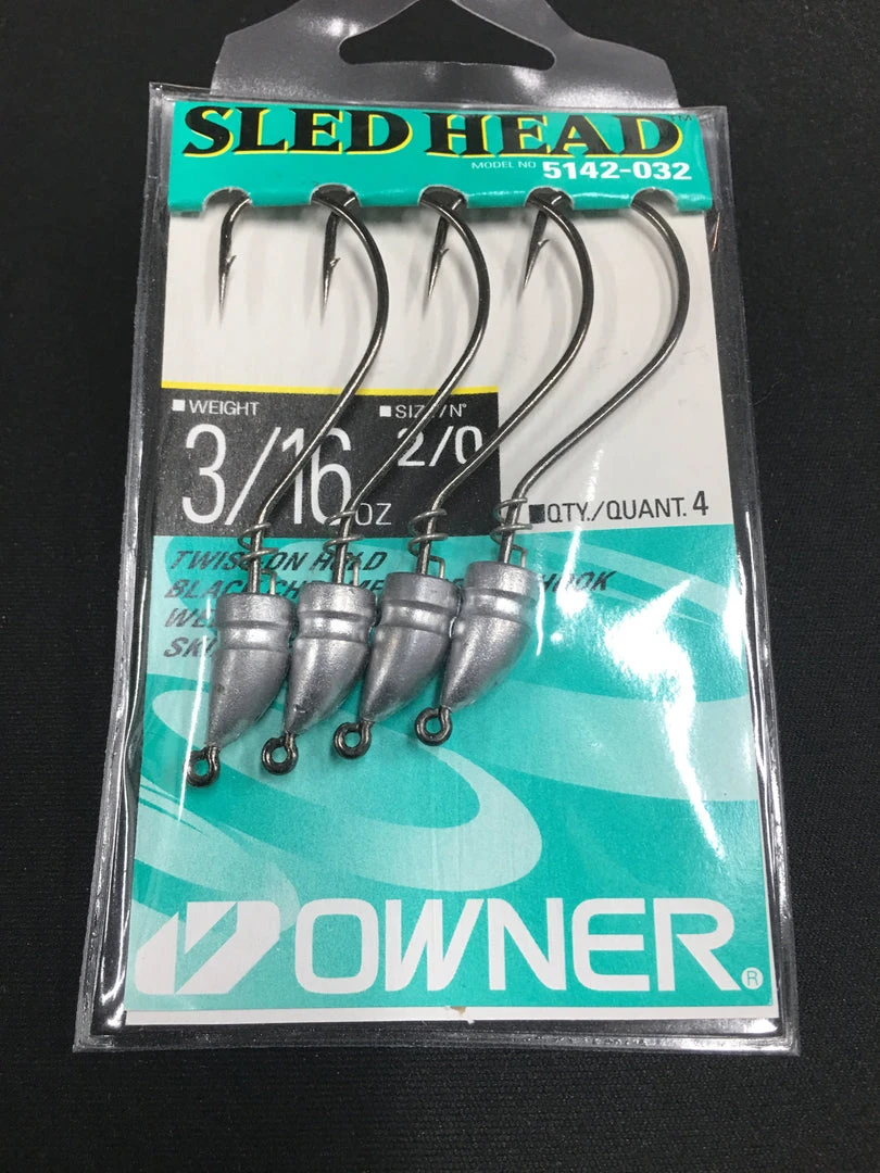 Sled Head With Screw-Lock Shank. For fresh or saltwater, unique shank keeps rigged soft plastics firmly in place.