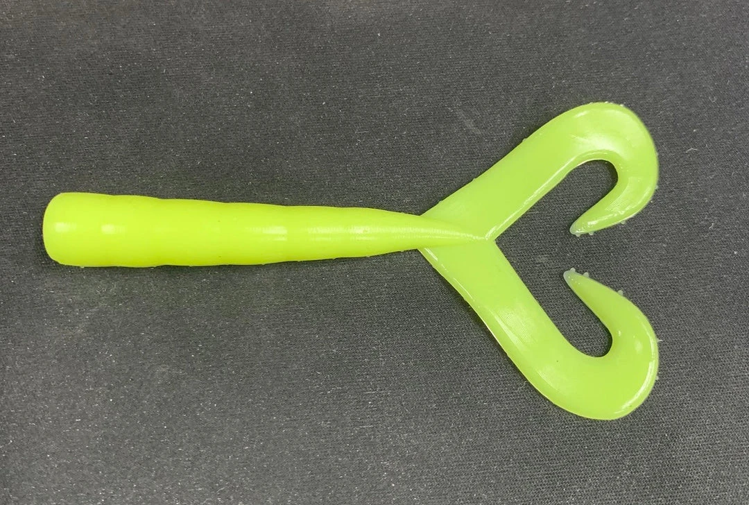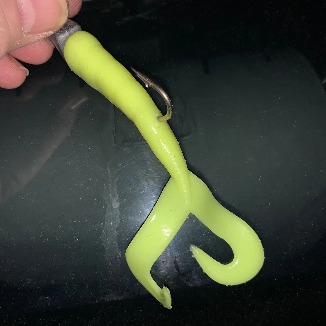 These twin-tail scampis can be fished on a bullet head jig or as a teaser on a dropper loop.